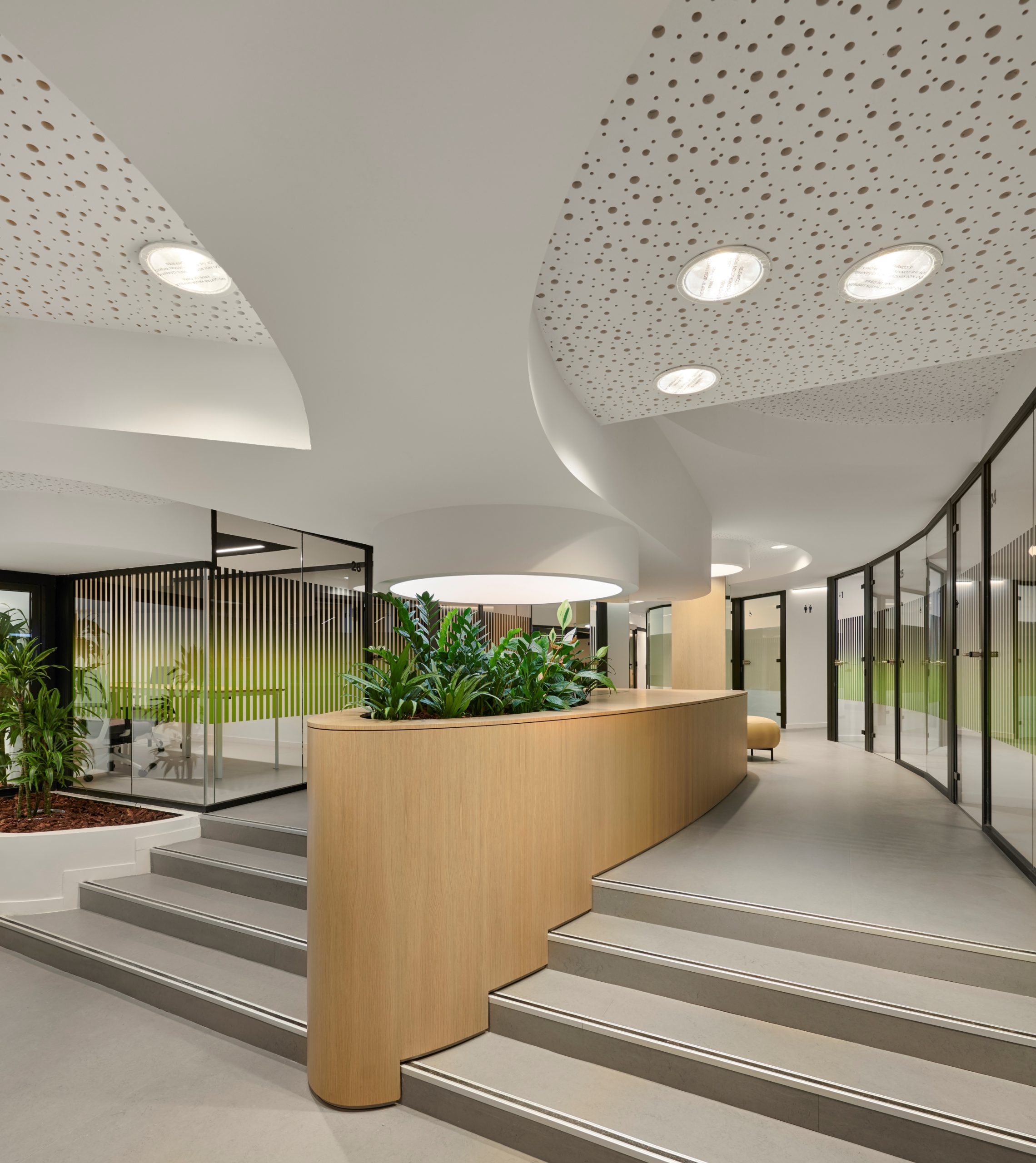 El proyecto de este Business Center ubicado en Aribau, redactado y dirigido por 2BMFG Arquitectes, ha cuidado el bienestar de sus usuarios, ha tenido en cuenta los principios WELL en el diseño de todos los elementos, y se ha apoyado en Cubiñà Contract (mobiliario y producción a medida) y en la Constructora Calaf.